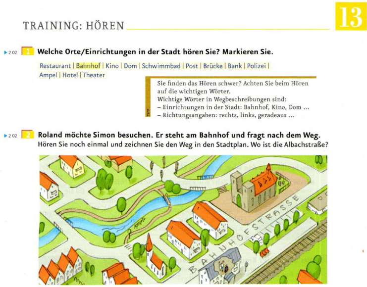 CIERRE INTEGRADOR: ¿Qué hay cerca de tu casa? Animate a diagramar un pequeño mapa de tu barrio, lo más próximo a tu casa, ¿hay supermercados, quioscos (kleine Supermärkte), estaciones de policía, escuelas, restaurantes, plazas? Ese vocabulario lo encontrarás en la lección 13. Dibujá y explicá en un pequeño texto lo que hay.