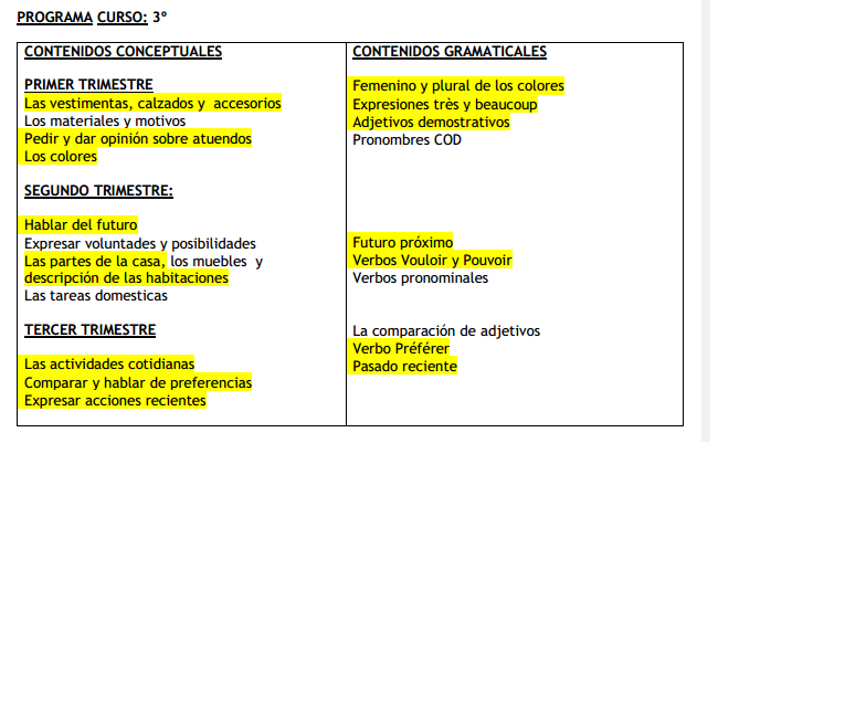Lo resaltado en amarillo son los temas prioritarios que pretendemos poder desarrollar todos antes de fin de año.