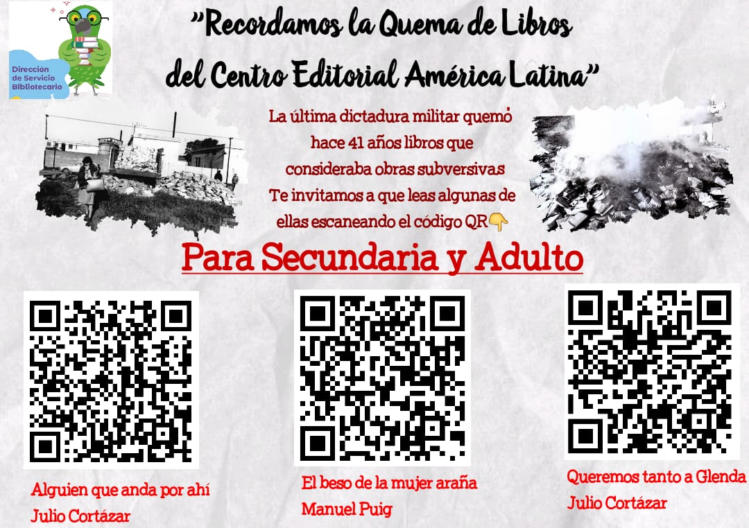 Recordamos la quema, llevada a cabo por agentes de la última dictadura cívico militar en un baldío de la localidad de Sarandí, por considerar que eran "obras subversivas que enajenaban la conciencia nacional", constituyó un artero ataque contra la cultura nacional y la libertad de expresión
