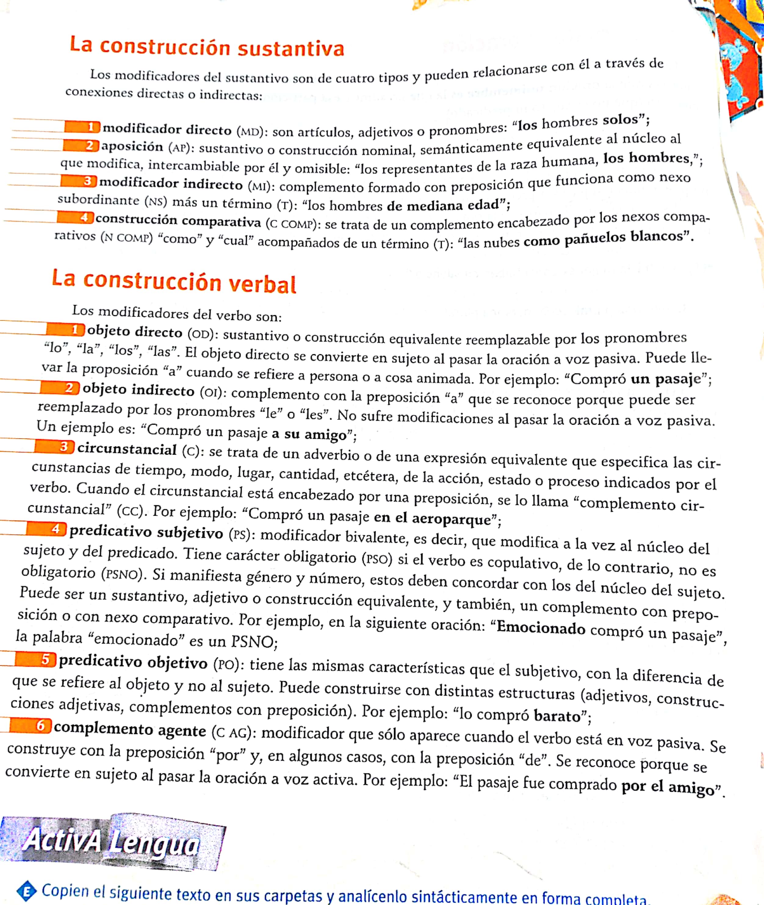 La construcción sustantiva