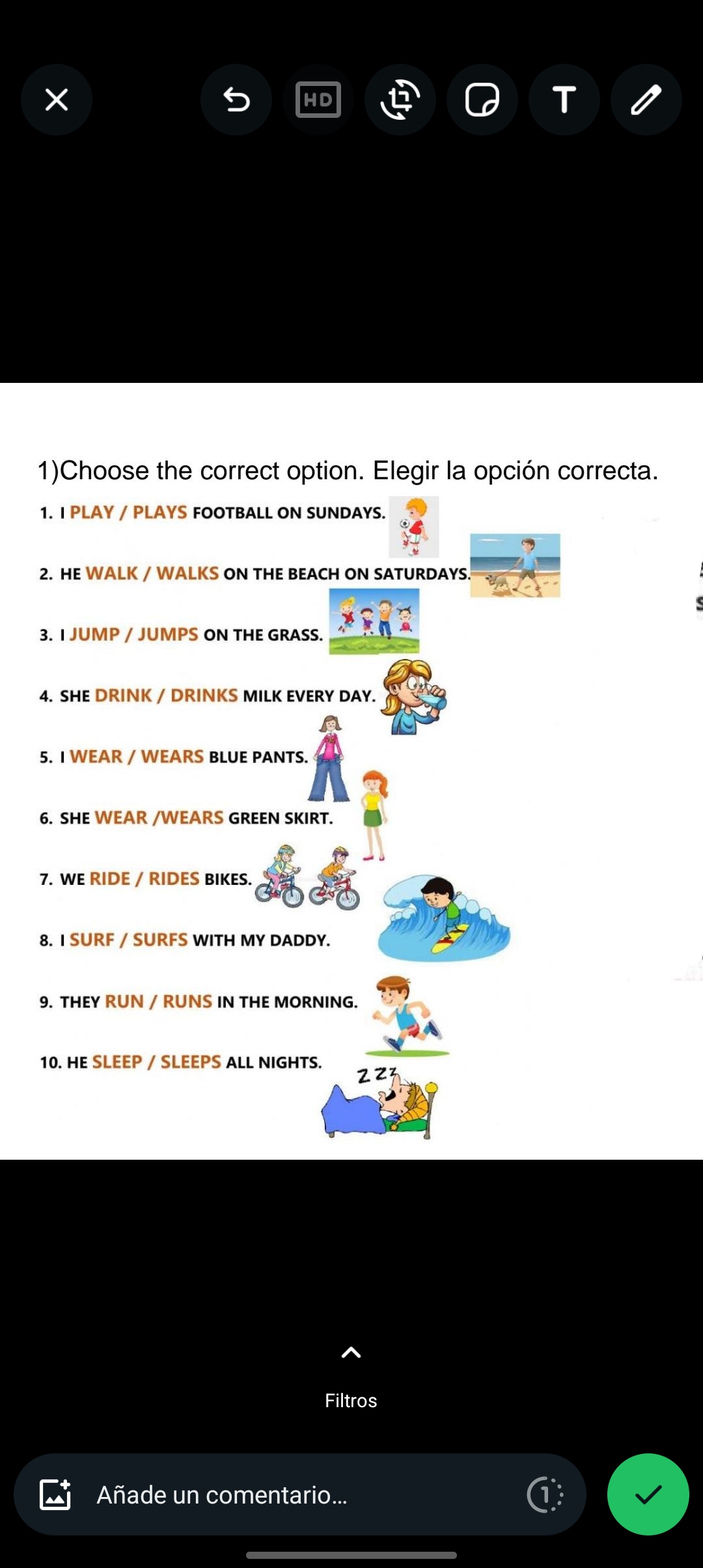 Escoger la opción correcta según corresponda