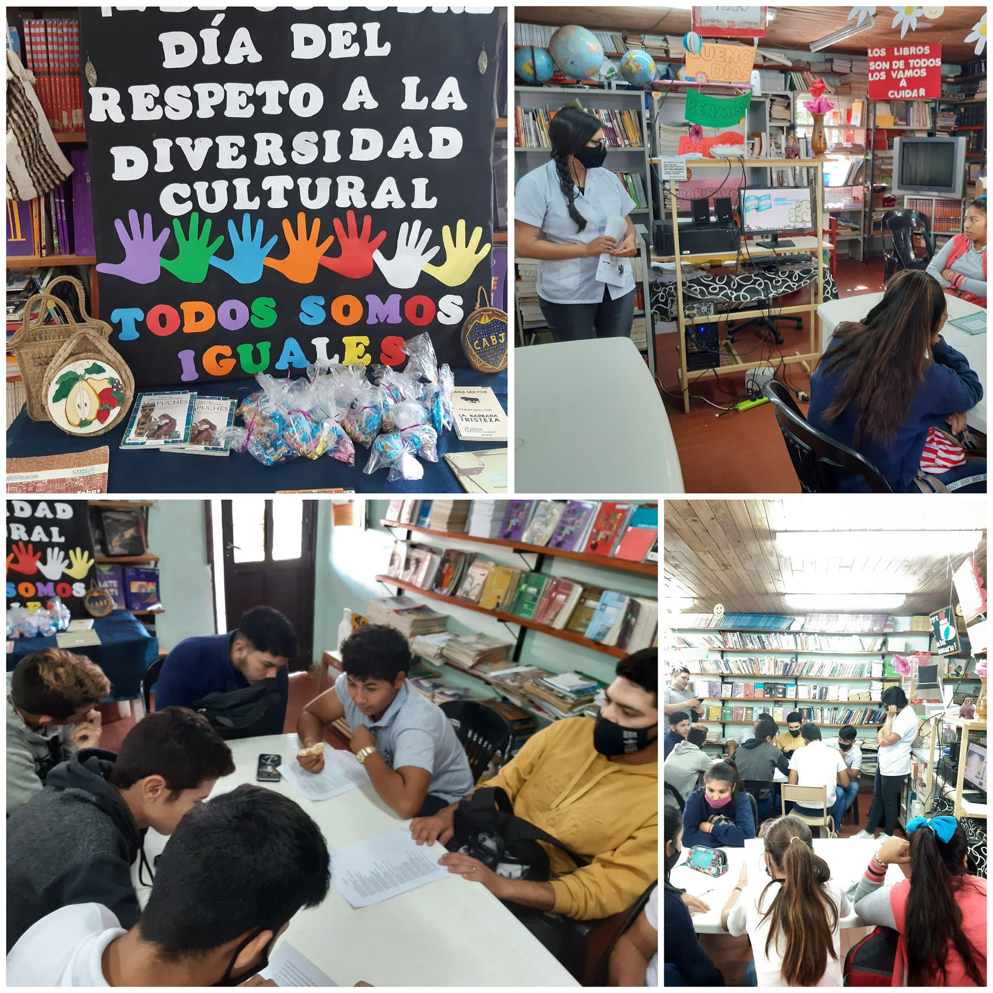 Actividades referidas por el Día del Respeto a la Diversidad Cultural con alumnos de 4°3 división, turno Mañana a cargo de la Bibliotecaria, Arriola Micaela, junto con el Prof.Romero, Bruno.