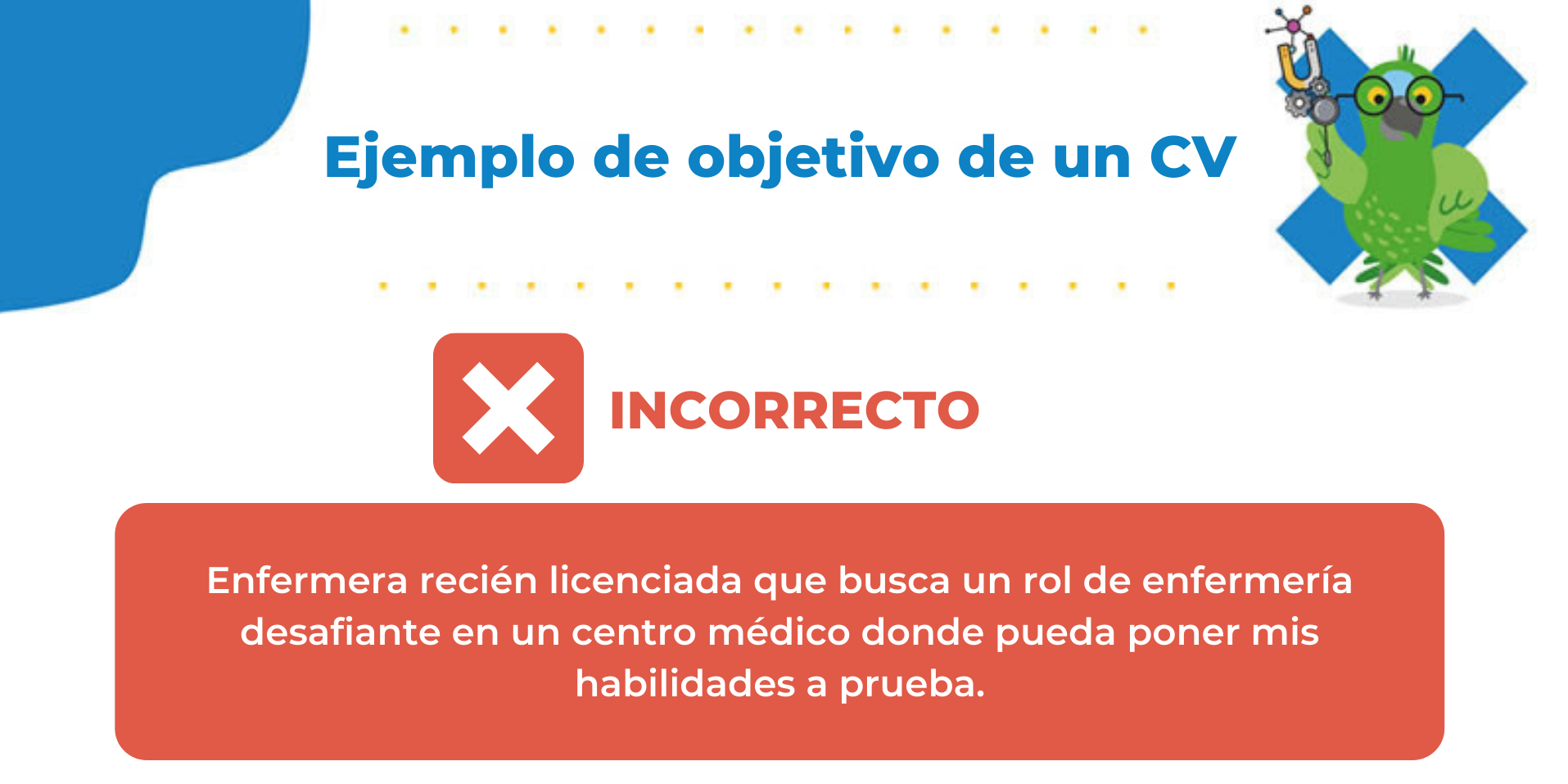 Un objetivo de CV muestra qué habilidades domina y cómo encajaría. Es una buena opción si tiene poca experiencia laboral relevante para el trabajo que está tratando de conseguir, por ejemplo, si está escribiendo un CV del estudiante.