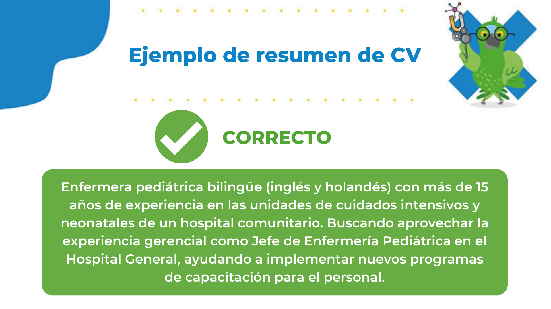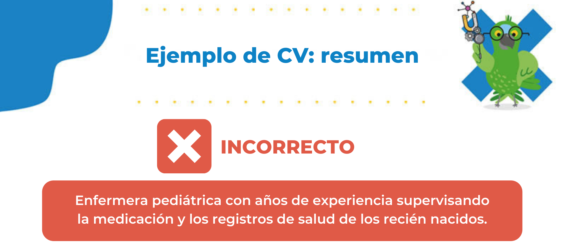 Este, por otro lado, dice poco más que "Soy enfermera". No presenta más que responsabilidades genéricas que tienen todas las enfermeras.