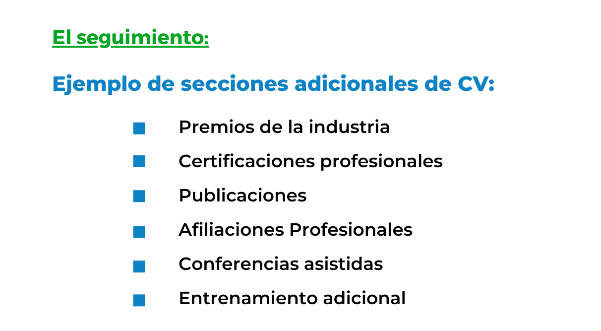 En tu CV, incluye un apartado adicional en el que muestres tus indiscutibles triunfos: cosas que demuestren tu valor como candidato.