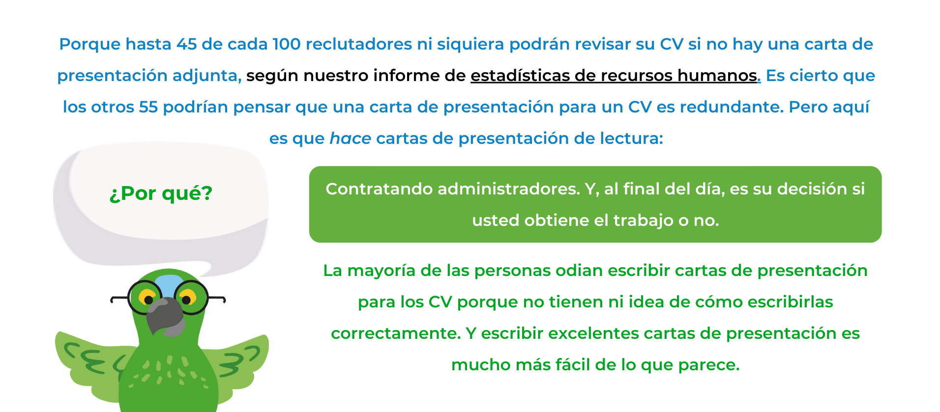 “No es necesario escribir una carta de presentación ” viene en un segundo cercano.