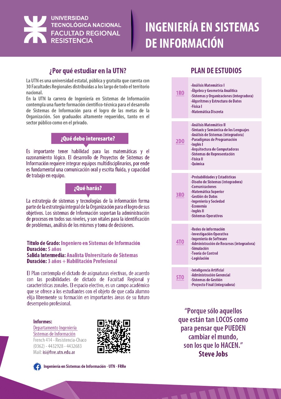 UTN - FRRe Carreras: Ingeniería en Sistemas de información