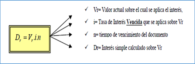 DESCUENTO RACIONAL: llamado también descuento matemático, es el que en realidad debería aplicarse en la práctica, ya que calcula los intereses sobre la suma de dinero efectivamente recibida, llamada valor actual, por consiguiente, aplica la tasa de interés “i”, o sea que podemos definir al Descuento Racional como el Interés Simple del Valor Actual. Si denominamos Vr al valor actual en el descuento racional para no confundirlo con otros valores actuales y también llamamos Dr al descuento racional tendremos