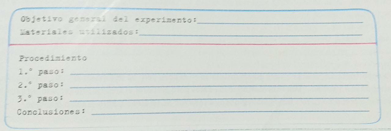 1. Se ha organizado una Feria de Ciencias en el colegio, y la profesora de Química necesita preparar unas guías para explicar los procedimientos que se llevan a cabo para realizar ciertos experimentos. Elabore dos informes, une sobre la potabilización del agua y otro sobre algún experimento que hayan ejecutado en el laboratorio o en el taller. Busquen la información en Internet o en lo biblioteca. El modelo del informe debe ser el siguiente: