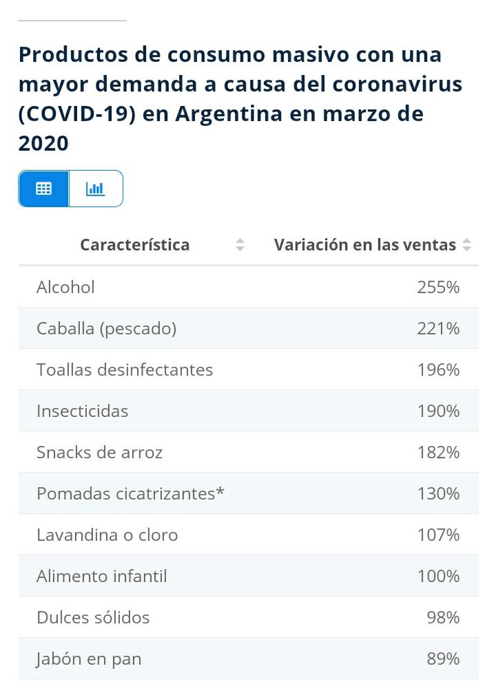 Ahora te proponemos que analices la tabla de productos que se consumen masivamente, y compares si alguno de los elemento de tu lista son de alto consumo: