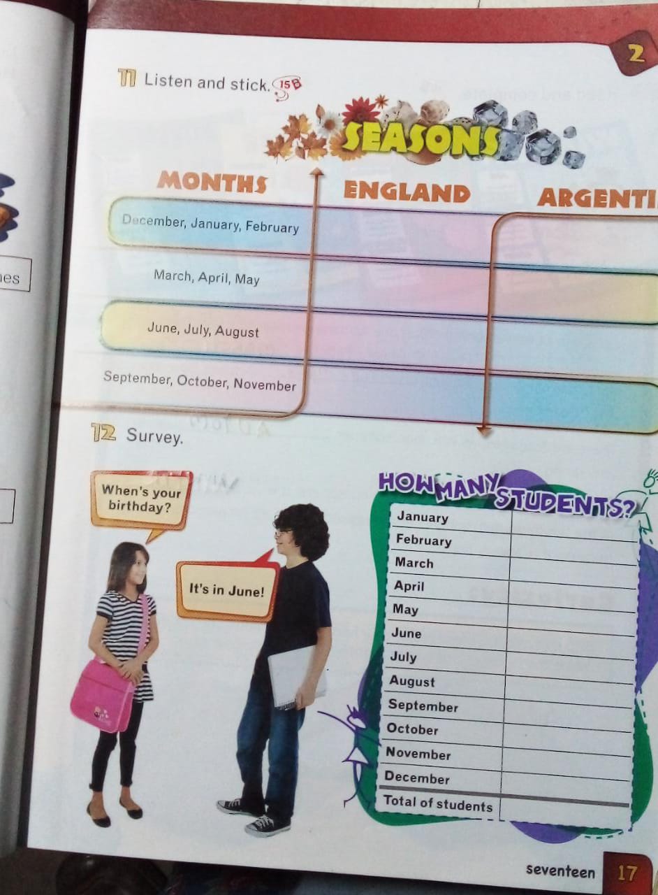 En la actividad Nº12 Verán un dialago, "When 's your birthday? (¿cuándo es tu cumpleaños? ) respuesta: It's in June.