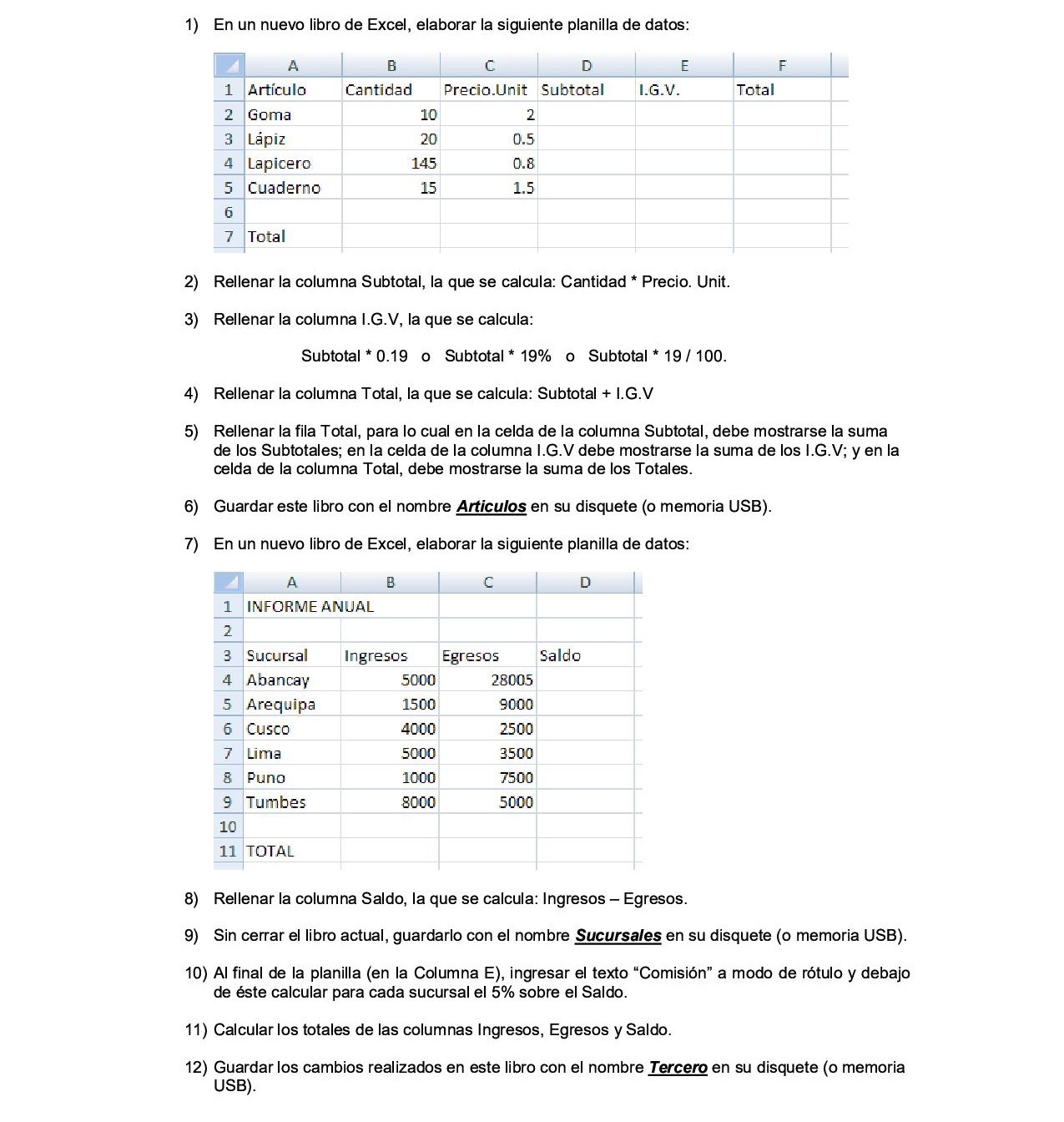 Resolver los dos ejercicios propuestos a continuación y guardarlos en un libro con el nombre EJERCICIO 1 + APELLIDO Y NOMBRE