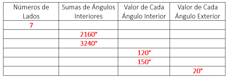 Completen la siguiente tabla referida a polígono Regulares
