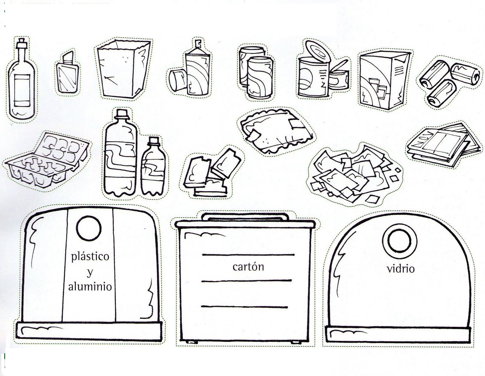 Pinta, recorta y elige los elementos para pegarlos en el contenedor correcto