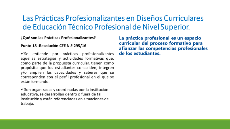 - 2. Las Prácticas Profesionalizantes en Diseños Curriculares de Educación Técnico Profesional de Nivel Superior.