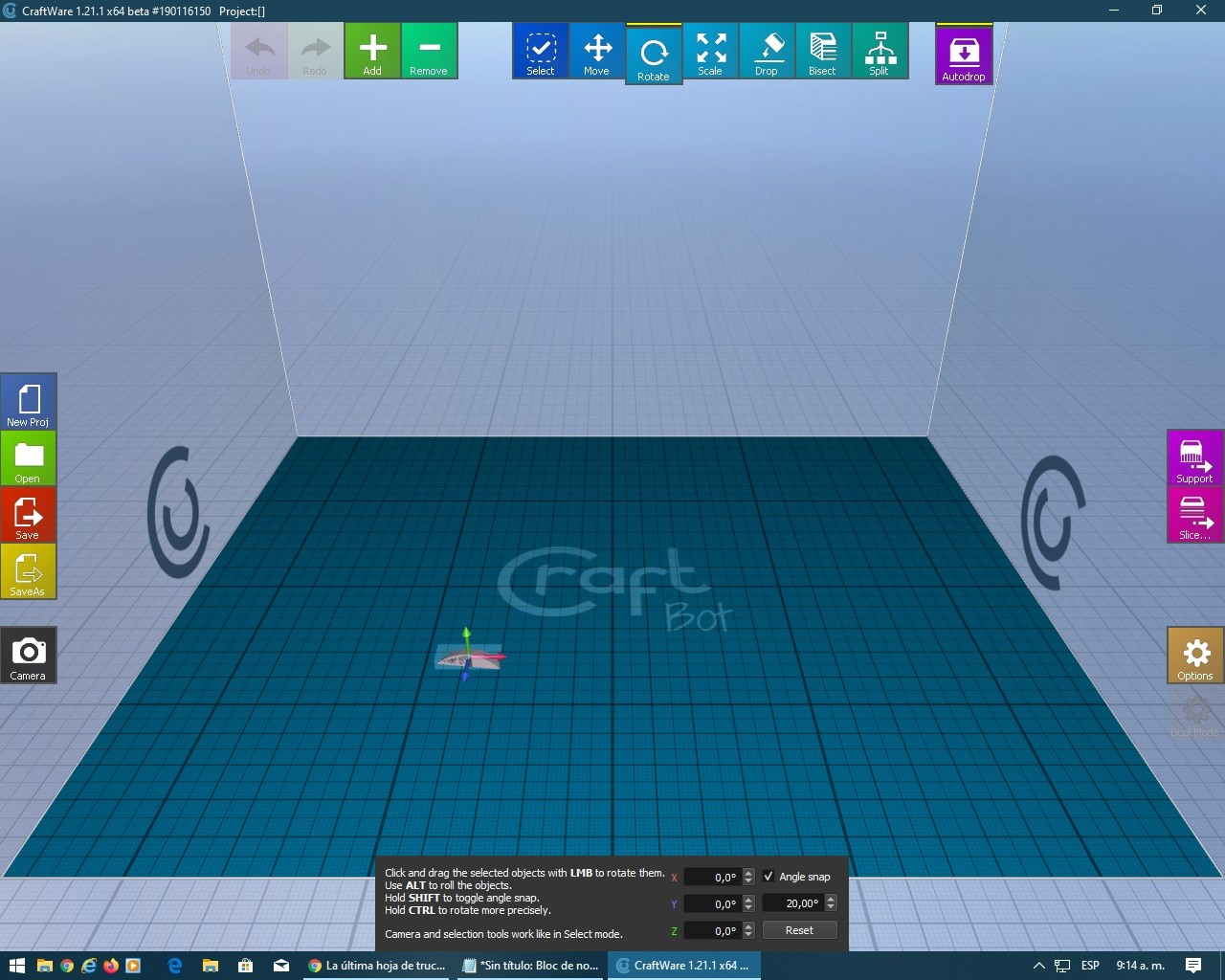 Hay que tener en cuenta que este software de laminado 3D está aún en versión beta (de prueba), por lo que pueden ocurrir errores en el uso diario.
