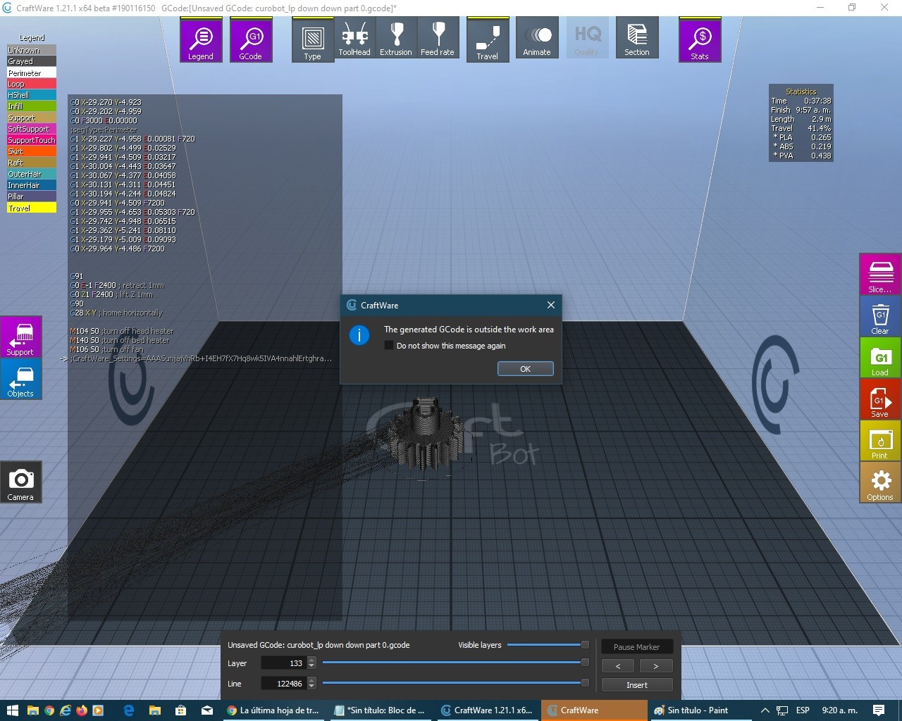 Lo mas importante, es que nos permitirá ademas, realizar el rebanado (slicer) de la pieza a imprimir, de modo de preparar el código necesario para ello. Un slicer o programa de corte 3D prepara el modelo seleccionado para nuestra impresora 3D y genera el código G, que es un lenguaje de programación de control numérico (CNC) que controla todas las maquinas CNC a través de una serie de instrucciones.