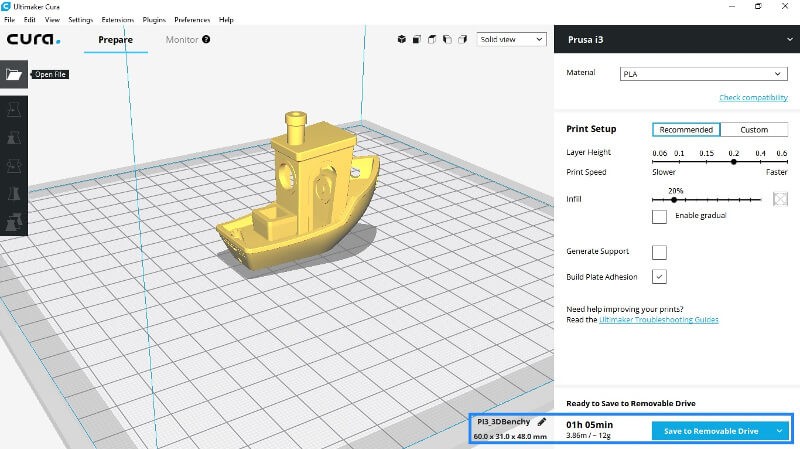 Cura es sin dudas, el slicer mas utilizado en la actualidad. Está hecho por Ultimaker y es extremadamente fácil de usar y rápido, por lo que es ideal para principiantes. No es un software propietario, por lo que funciona para múltiples impresoras diferentes. La desventaja de la facilidad de uso es que tiene menos control sobre algunas de las configuraciones más detalladas. Sin embargo, hay muchas opciones de complementos que puede agregar si necesita alguna de esas funciones adicionales.