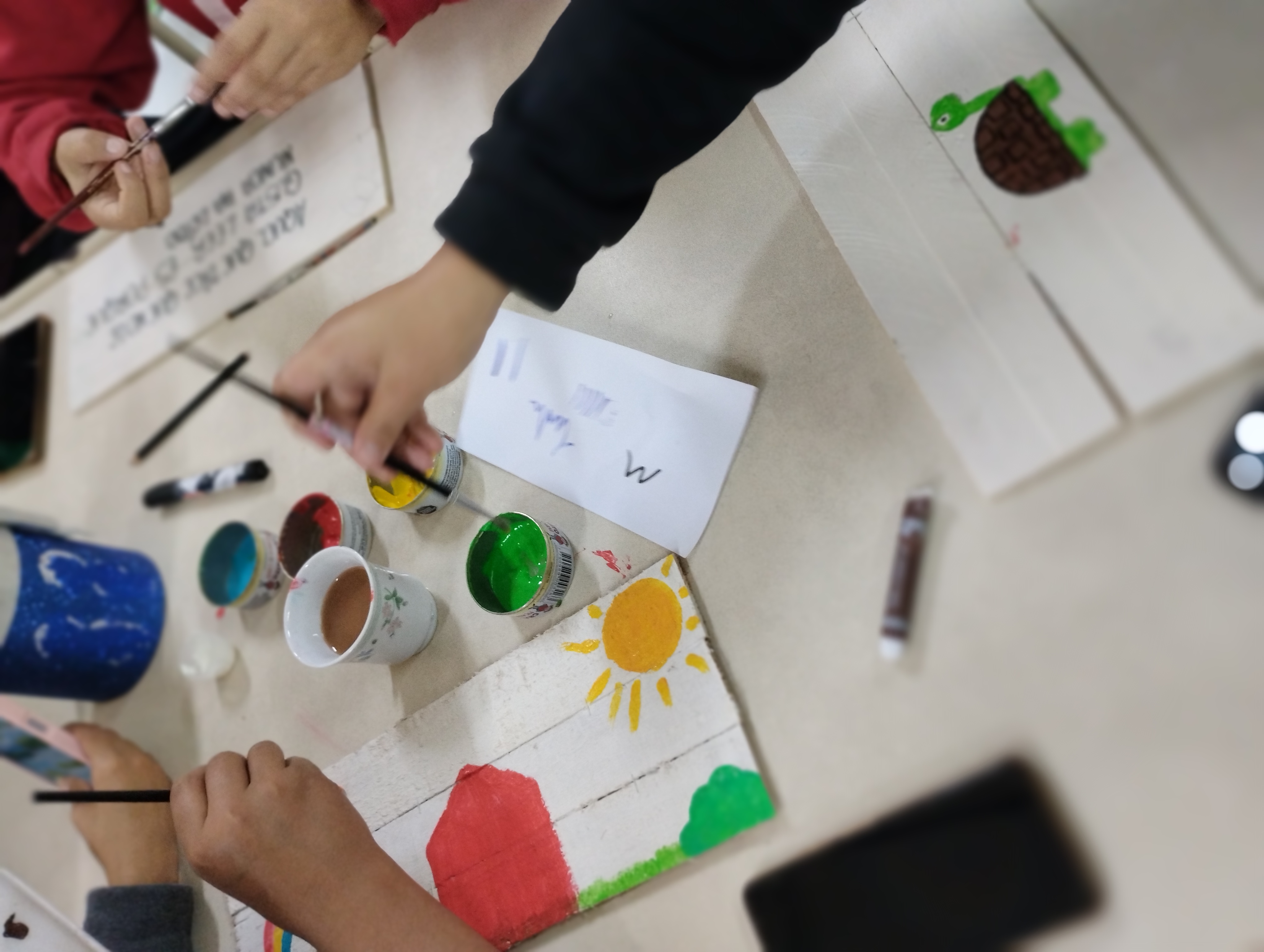 👉Lectura con rotafolio y pintar soportes para los estantes de la biblioteca: también se realizó la lectura del cuento "Como si el ruido pudiera molestar" del autor chaqueño Gustavo Roldán, acompañado del rotafolio con las imágenes del mismo.