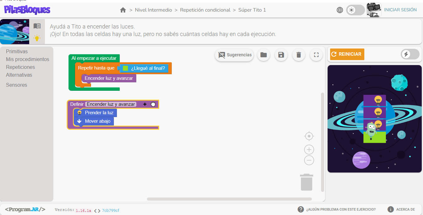 Luego de leer el material de PilasBloques acerca de los desafíos correspondiente a Repetición Condicional y Alternativa Condicional, los invitamos a compartir sus trabajos en este foro y a escribir también una breve reflexión sobre el proceso de programar.