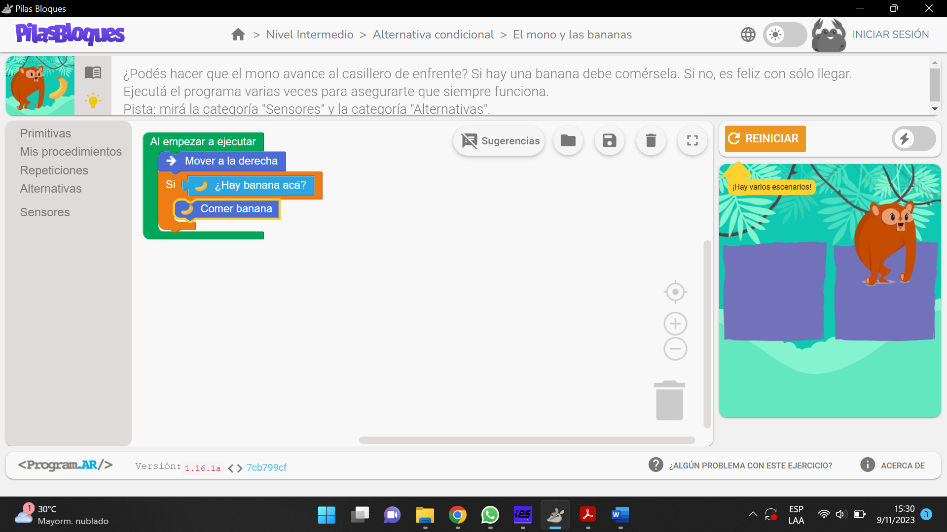 Alternativa condicional: EL MONO Y LAS BANANAS