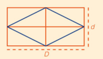El área del Rombo y/o romboide es la mitad del área del rectángulo cuyos lados miden lo mismo que las diagonales del rombo. Puedo calcularlo: d.D/2