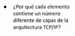 cada elemento contiene un número diferente de capas de la arquitectura TCP IP?