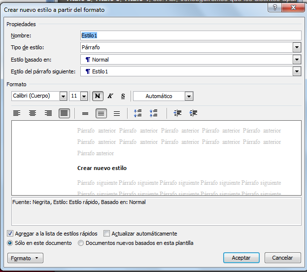 Crear nuevo estilo