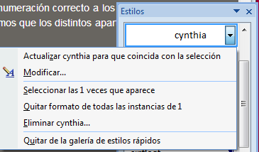 Por ejemplo, en la imagen vemos que se ha aplicado el estilo personalizado de de Cynthiao y que esta en negritas