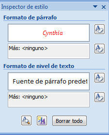 El botón Inspector de estilo abre un cuadro de diálogo que permite observar el estilo aplicado haciendo clic sobre cualquier parte del texto.