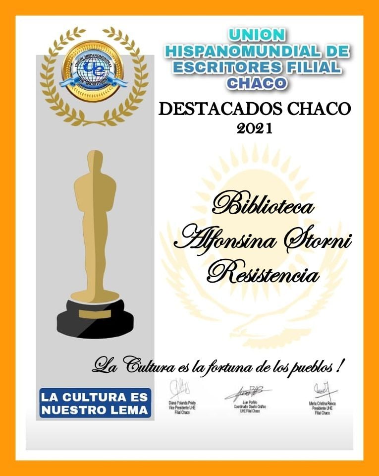 Que honor!!. Muchas gracias @Unión Hispanomundial Filial Chaco por este reconocimiento para nuestra Biblioteca.